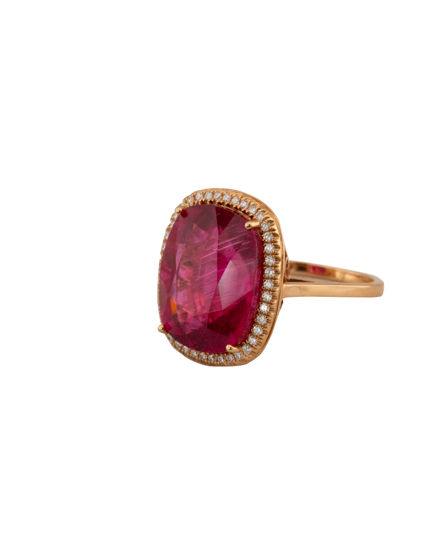 Rounded Cushion Shaped Rubellite Ring with Diamonds
