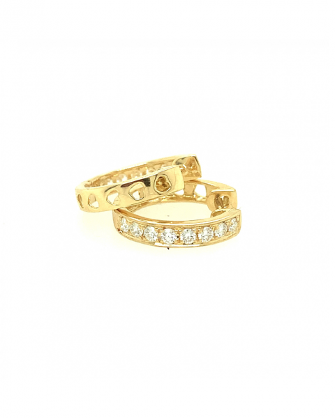 18K Gold Snap On Hoop Earrings with Diamonds. Available in Yellow, White, and Rose Gold.