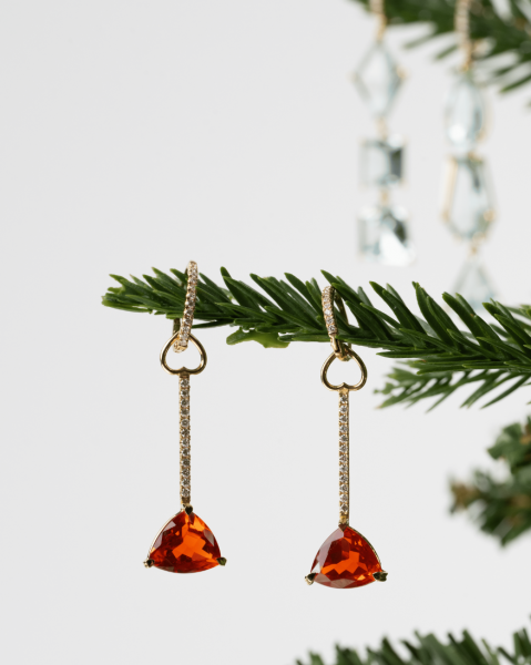 Triangle Shaped Fire Opal Earrings with Diamonds