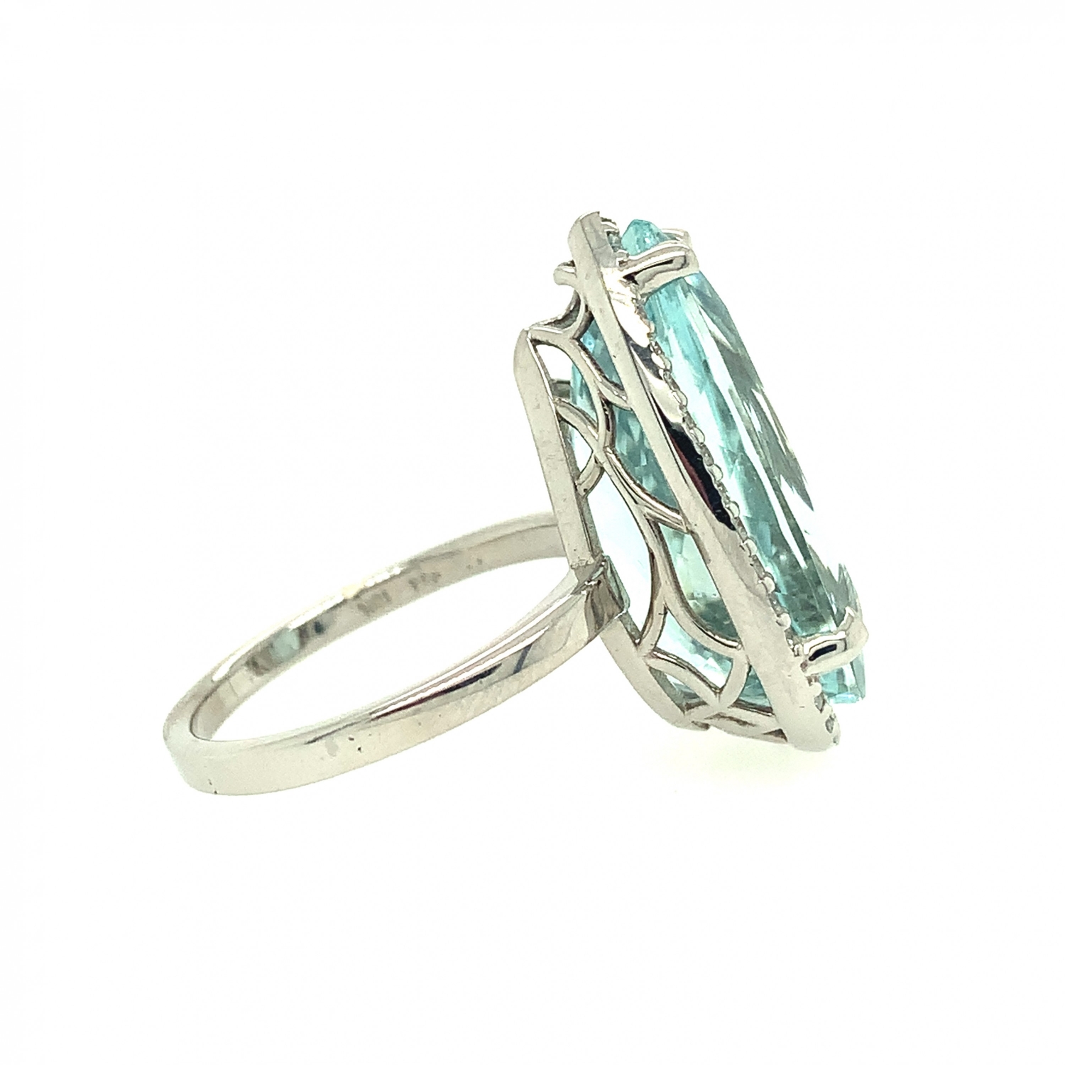 18K White Gold Pear Shaped Aquamarine Ring with Diamonds (Rhodium Plated)