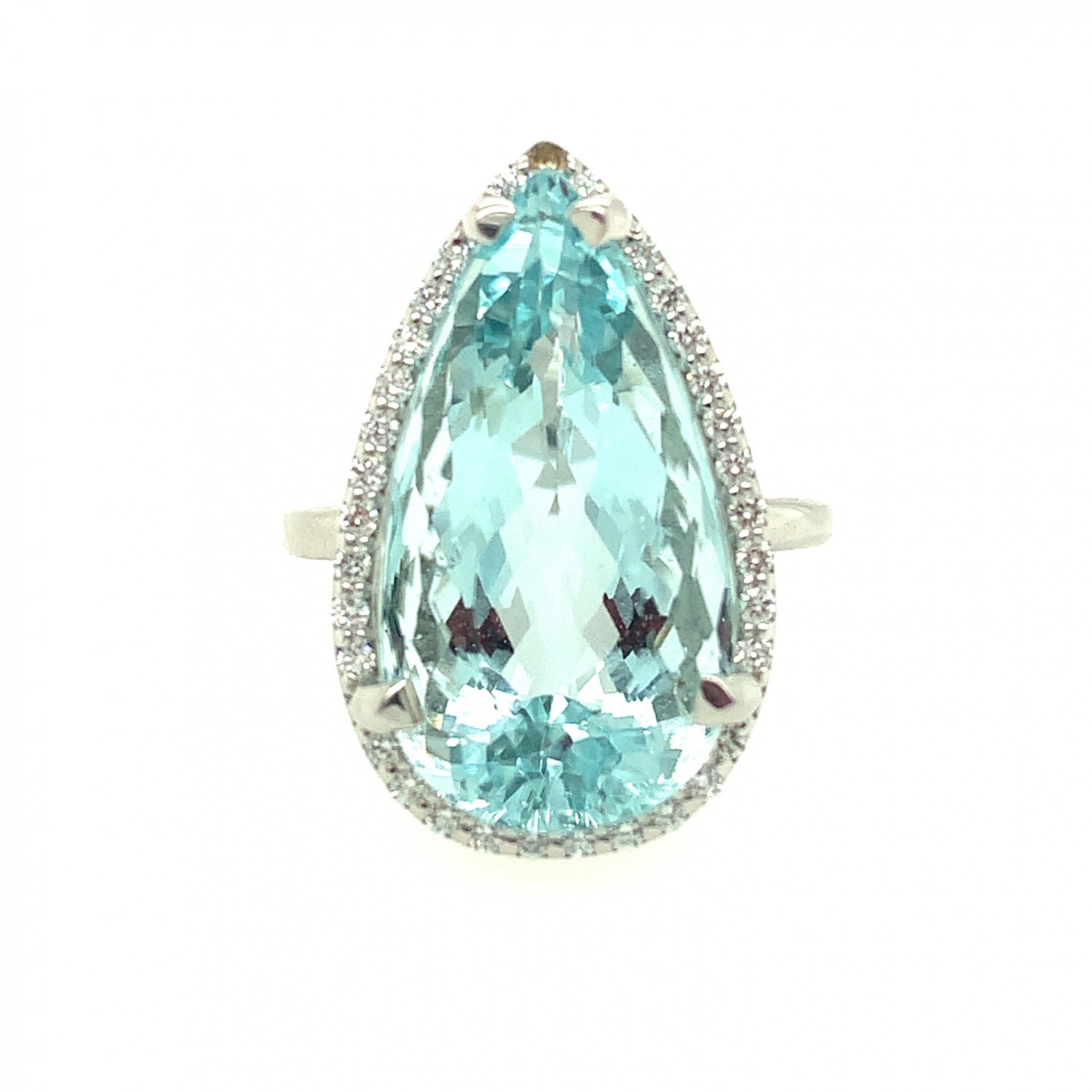 Aquamarine Pear Shaped Ring with Diamonds