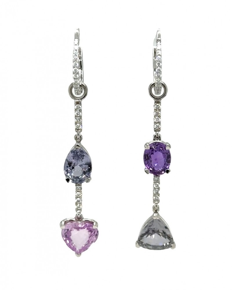 Asymmetric Multi Colored Sapphire Earrings with Diamonds