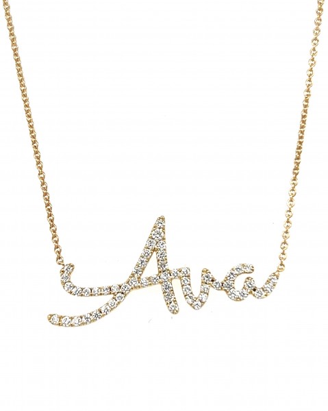 18K Yellow Gold “Ave Name Pendant with Diamonds
