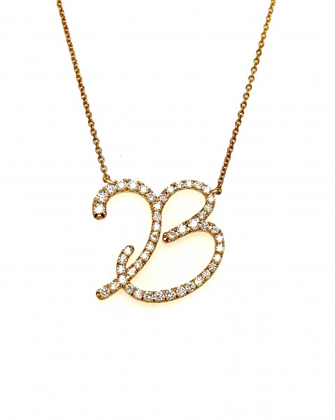 18K Yellow Gold “B” Initial Pendant with Diamonds