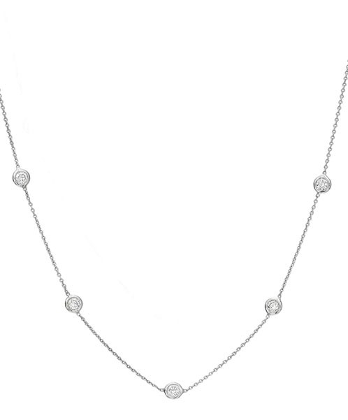 18K White Gold Chain with 3 or 5 Diamond Stations (Rhodium Plated)