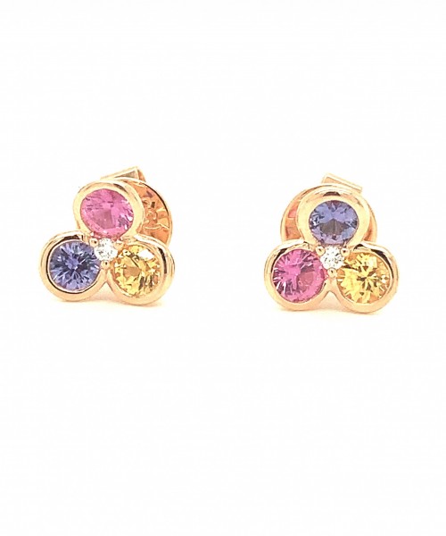 18K Rose Gold Multicolor Sapphire Stud Earrings with Diamonds