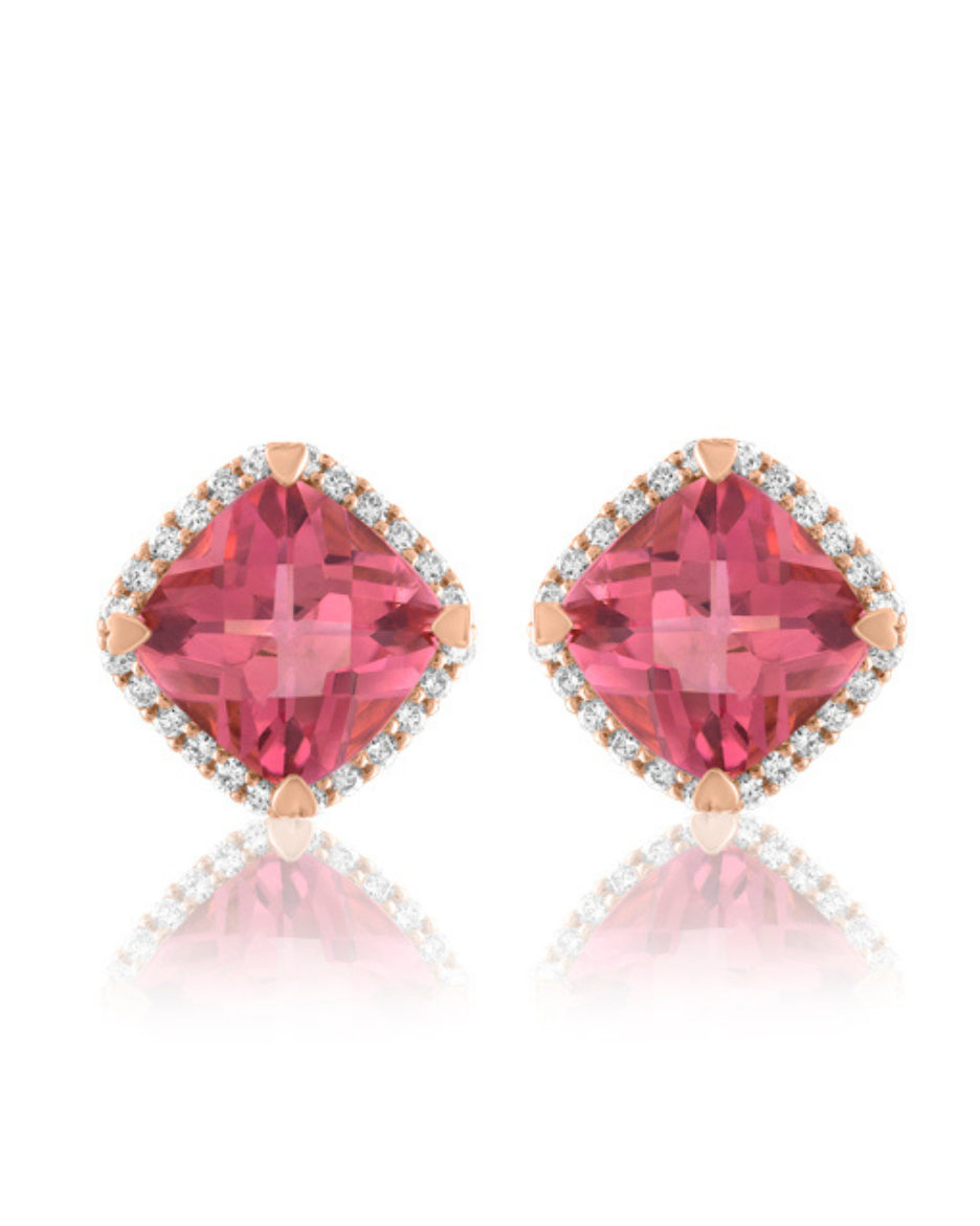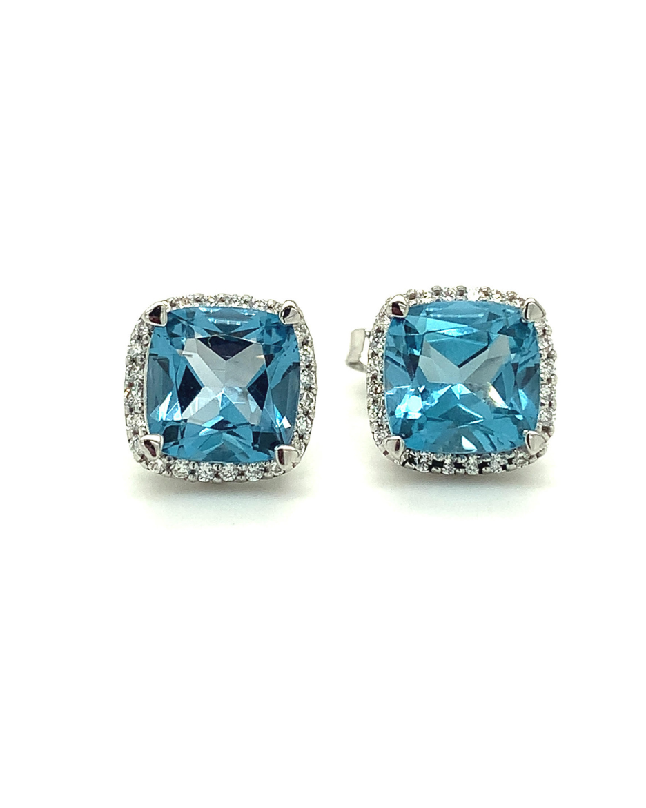 Cushion Shaped Stud Earrings with Diamonds