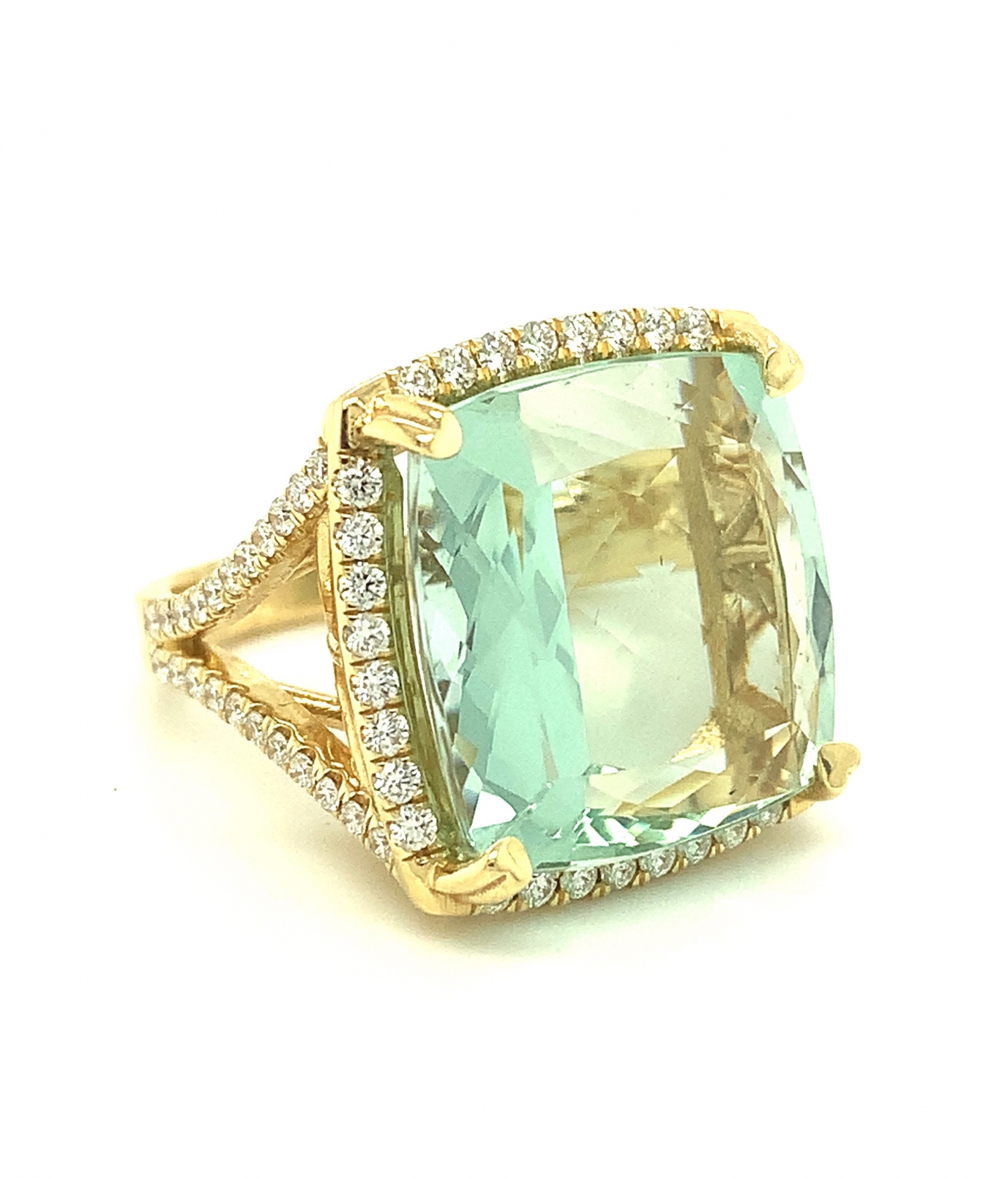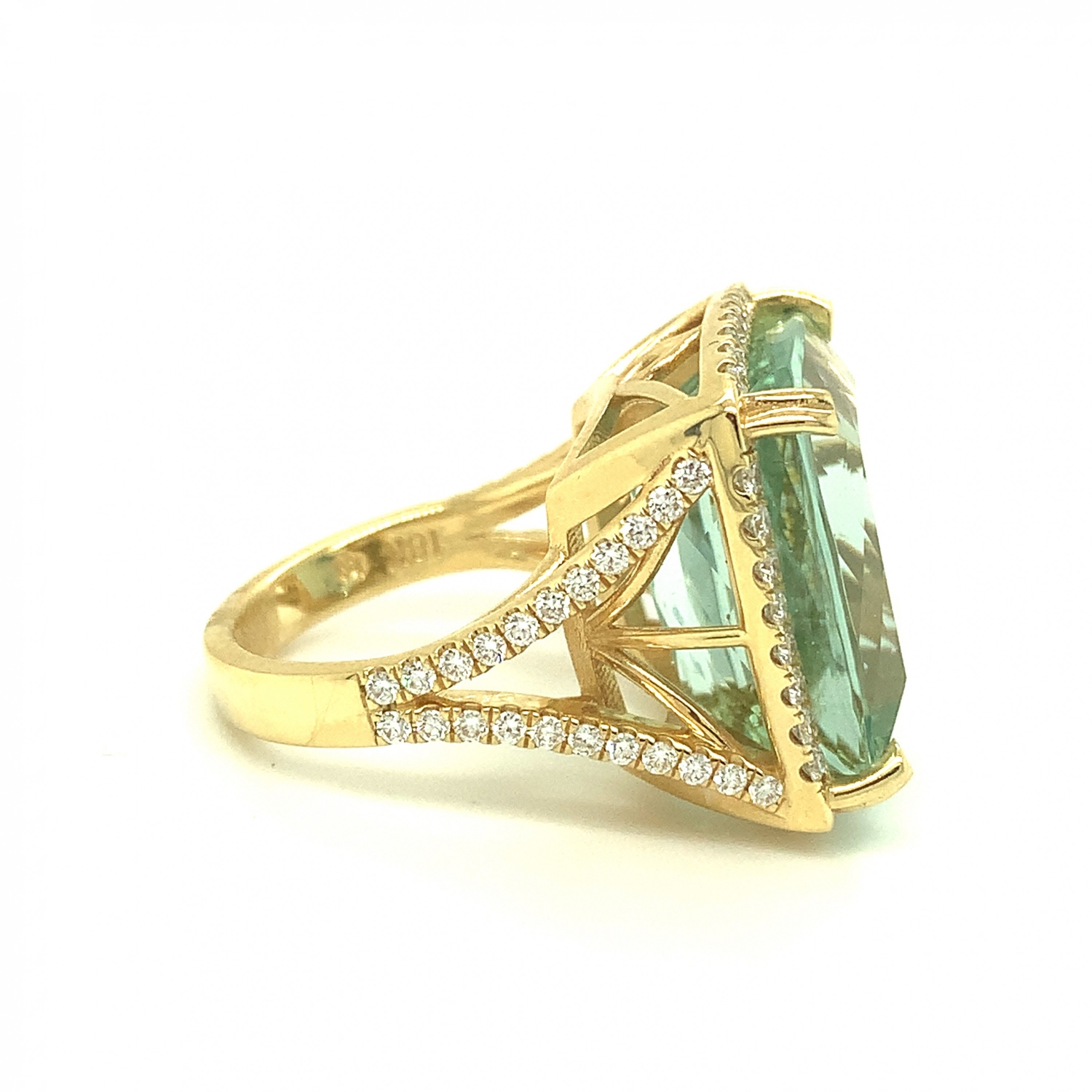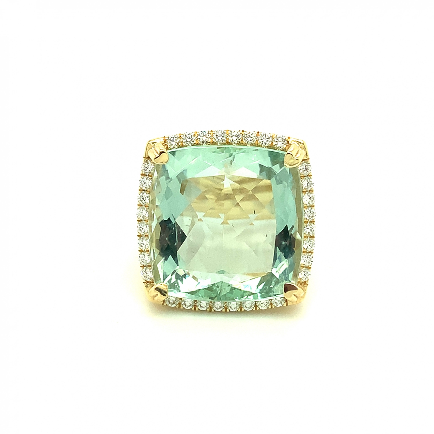 18K Yellow Gold Square Shaped Green Beryl Ring with Diamonds