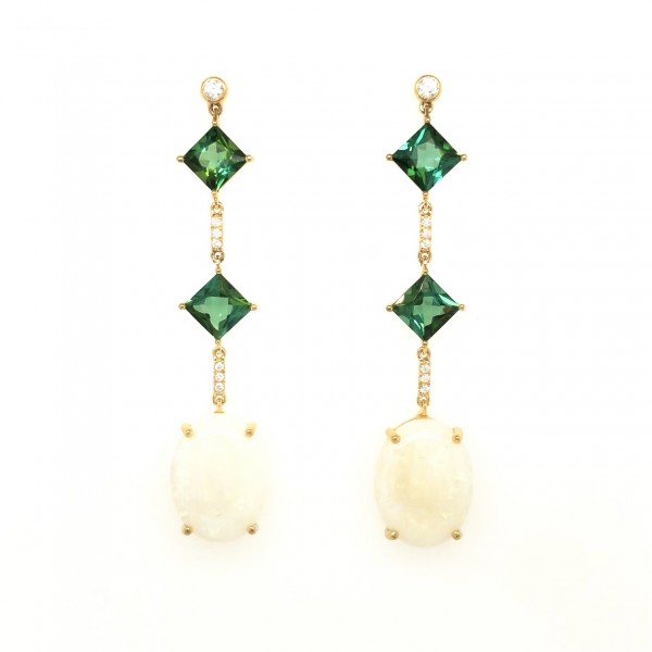 Green Tourmaline and Opal Earrings with Diamonds