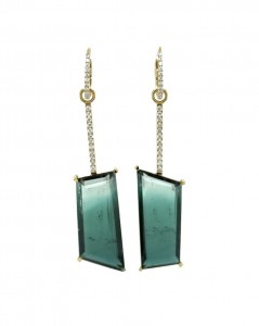 18K Green Tourmaline Asymmetric Drop Earrings With Diamonds
