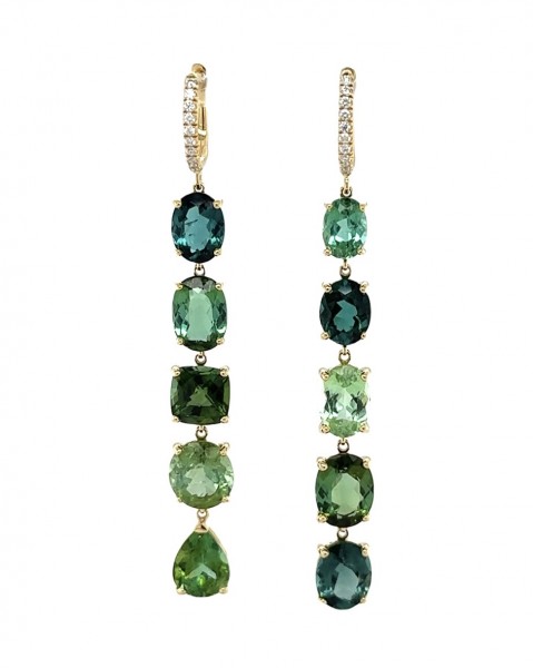 Green Tourmaline Asymmetric Drop Earrings with Diamonds