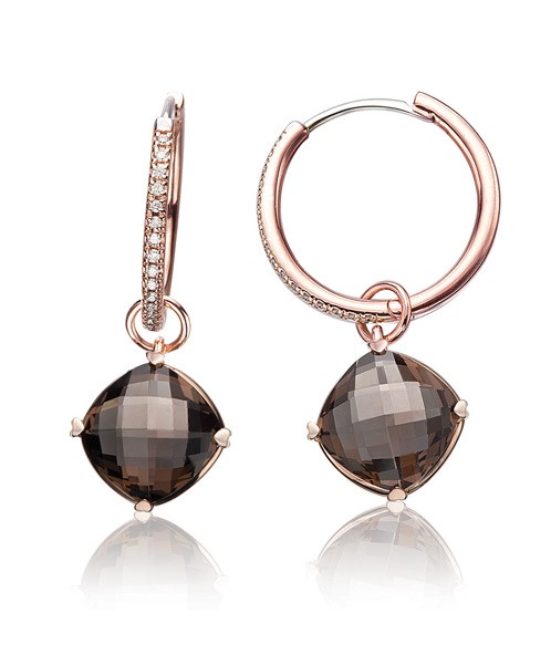 18K Rose Gold Diamond Hoop Earrings with Smoky Quartz Drops