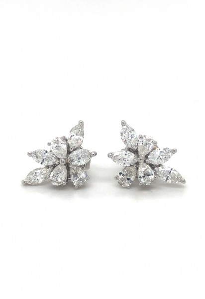 18K White Gold Marquise and Pear Shaped Diamond Cluster Studs (Rhodium Plated)
