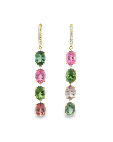 18K Yellow Gold Mix Tourmaline Asymmetric Earrings with Diamonds (9.67 CTS)