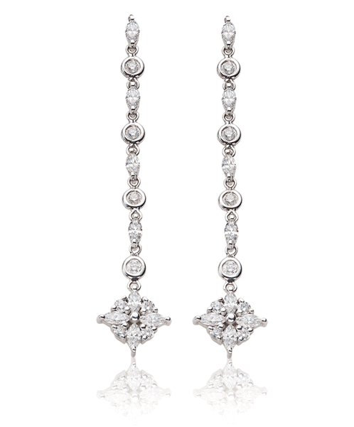 18K White gold Marquise and Round Shaped Diamond Drop earrings (Rhodium Plated)