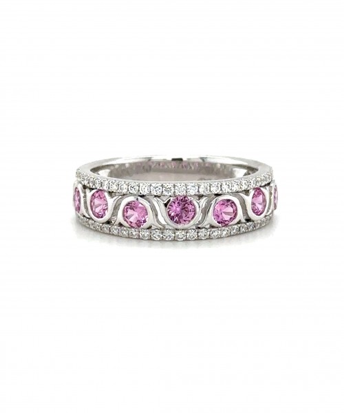 18K White Gold Pink Sapphire and Diamond Band (Rhodium Plated)