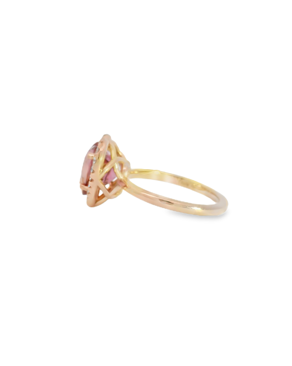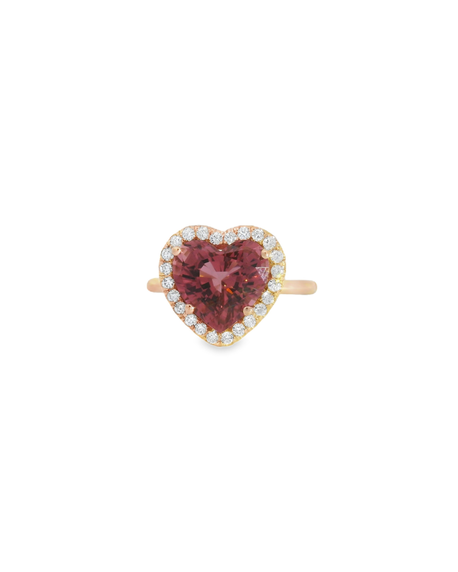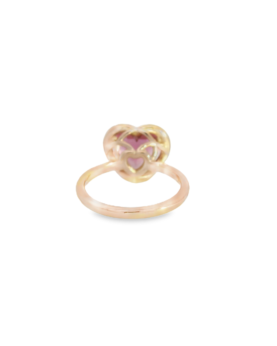 18K Rose Gold Pink Tourmaline Heart Shaped Ring with Diamonds