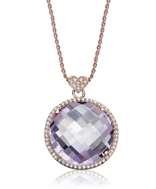 18K Rose Gold 20mm Rose de France Round Necklace with Diamonds