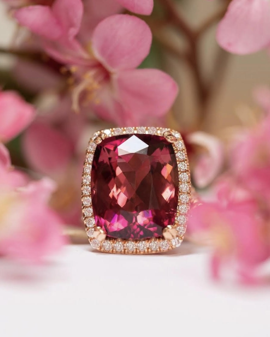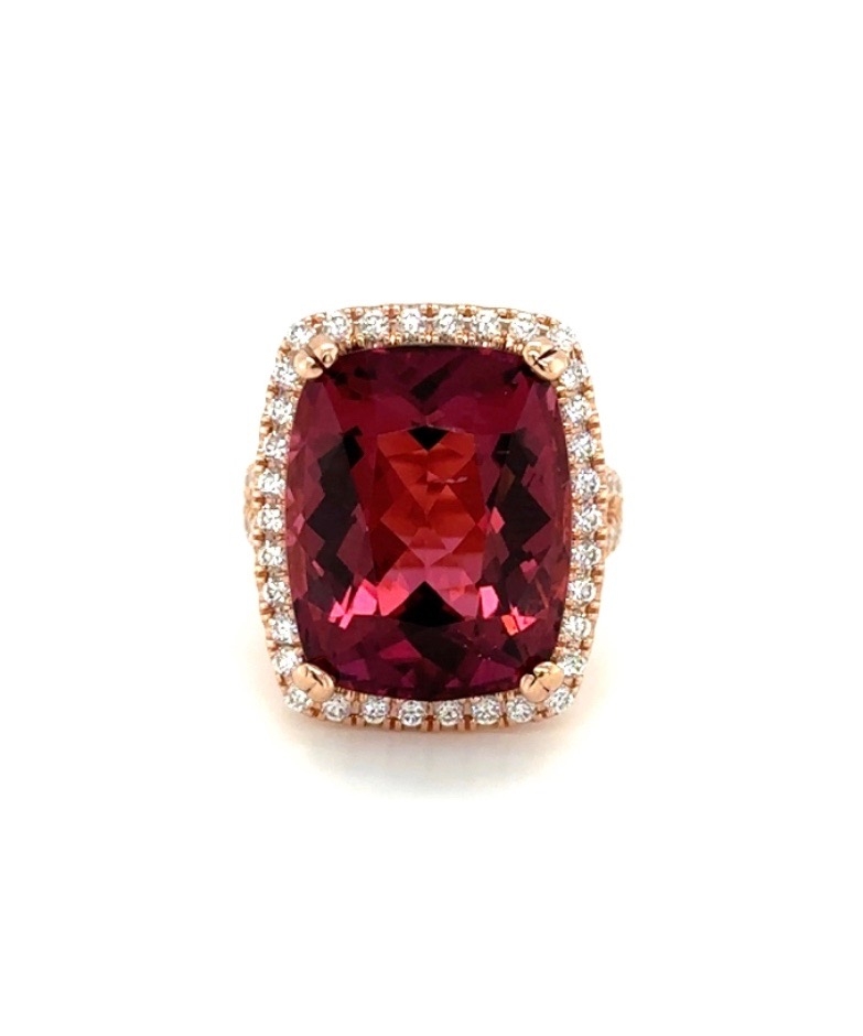 18K Rose Gold Rubellite Ring wtih Diamonds