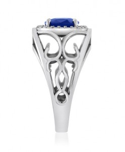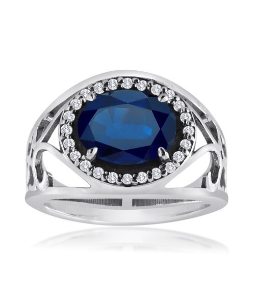 18K White Gold and Diamond Ring with Oval Sapphire (Rhodium Plated)