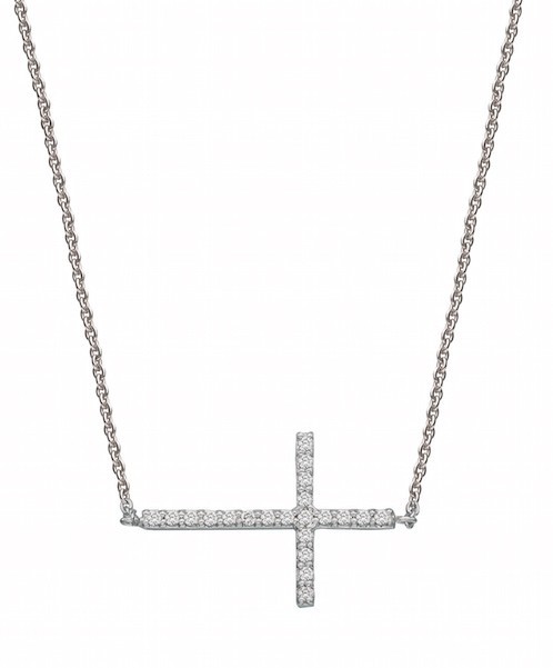 18K white gold diamond sideways cross (Rhodium Plated)