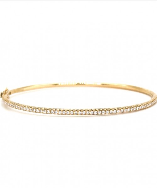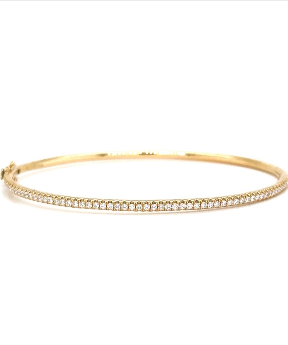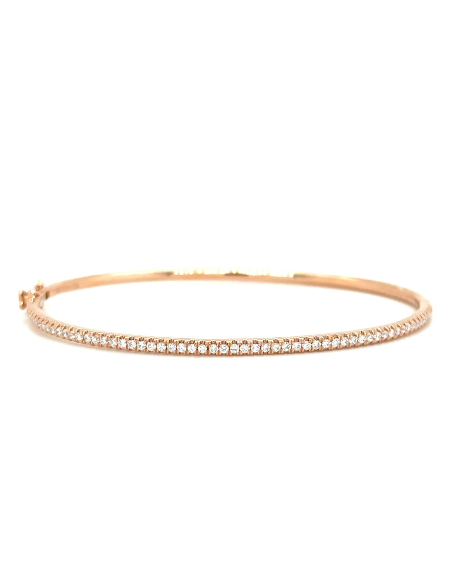 18K Gold Skinny Bangle with Diamonds. Available in Yellow and Rose Gold.