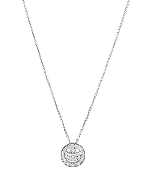 18K White Gold and Diamond Smiley Face Necklace (Rhodium Plated)