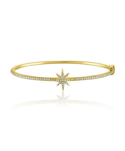 18K Yellow Gold Star Bangle with Diamonds
