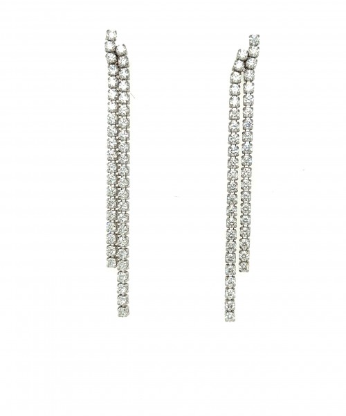 18K White Gold Two Row Diamond Line Drop Earrings (Rhodium Plated)