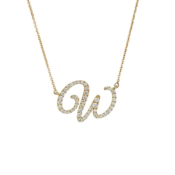 18K Yellow Gold “W” Initial Diamond Pendant Necklace
