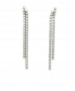 Two Row Diamond Line Drop Earrings