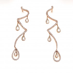 Rose Gold Twist Earrings with Diamond Drops
