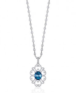 London Blue Topaz Swirl Necklace with Diamonds