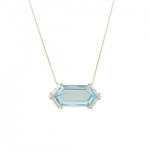 Kite Shaped Sky Blue Topaz Pendant with Diamonds